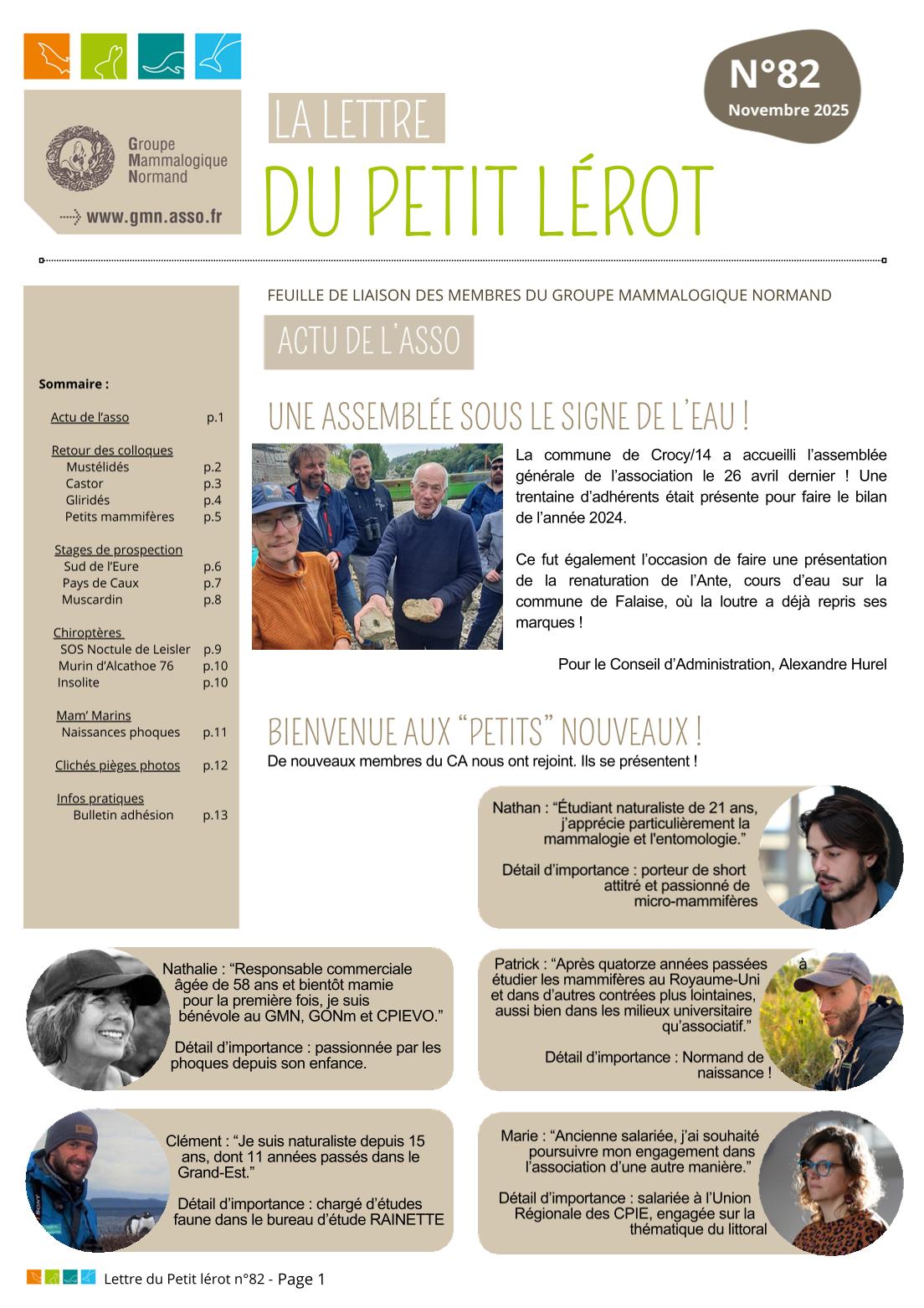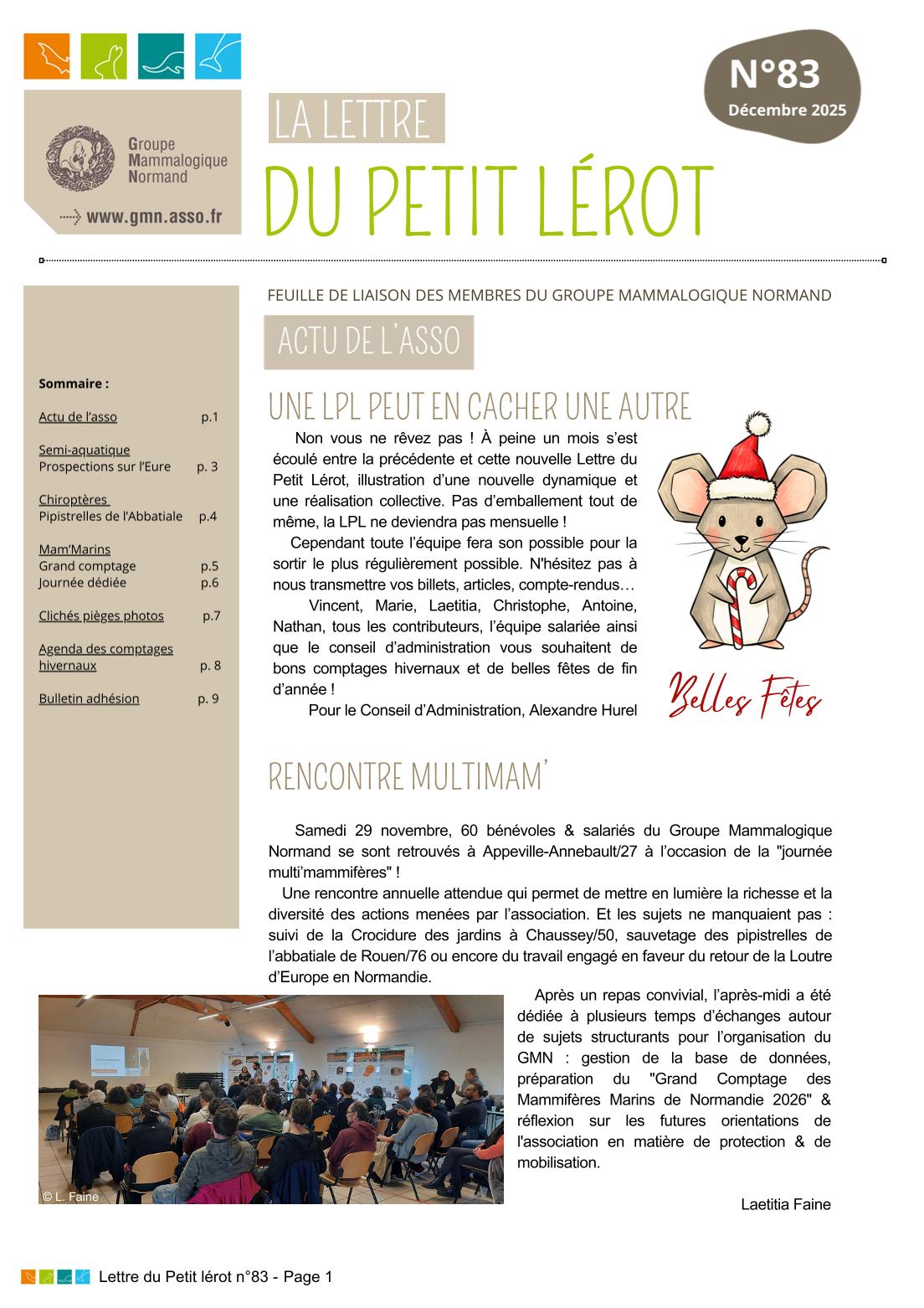 La Lettre du Petit Lérot (LPL) est la feuille de liaison de l’association, présentant le bilan des activités menées par les bénévoles du GMN au cours des derniers mois.